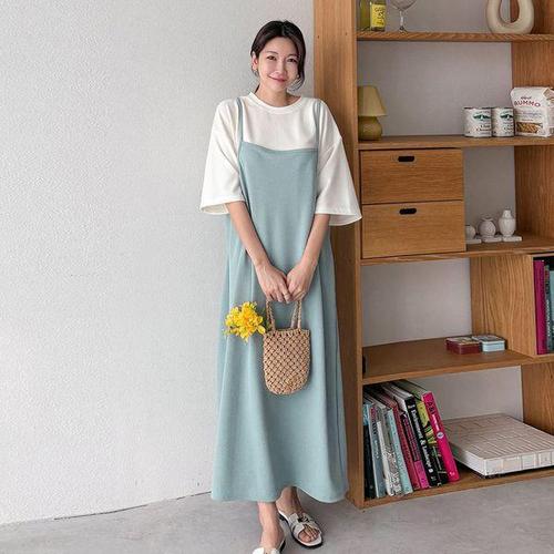 [유야]여성 레이어드 무지 반팔 끈나시 롱원피스 -FOP0387- 여름