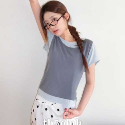 [오너클랜]인기상품 데일리 슬림 체리끈 레이어드 크롭 나시 반팔 티셔츠 [WFLHRWS_260208]
