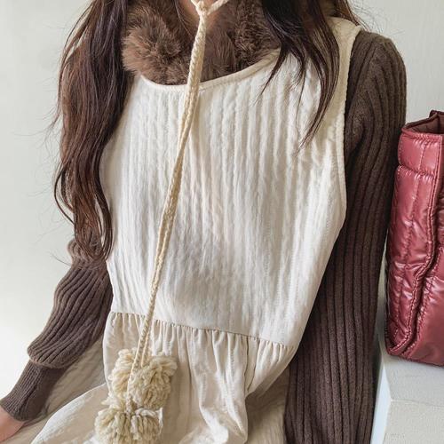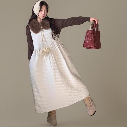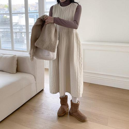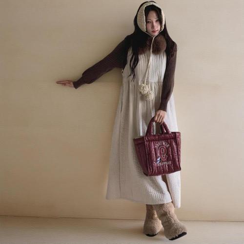 누빔 패딩 레이어드 롱 원피스 퀼팅 리본 겨울 방한 임부복 나시원피스 Do166