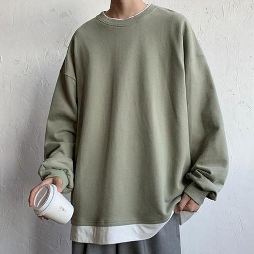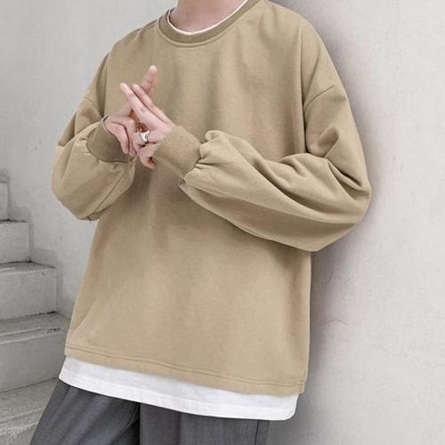 [엄지척]남자 오버핏 레이어드 맨투맨 티셔츠 남성 무지 긴팔_20458401_667501