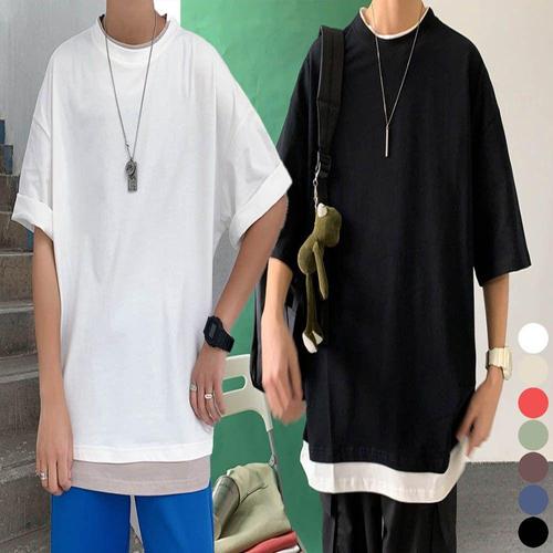 [마물샵] 오버핏 남성티셔츠 반팔티 레이어드 라운드티