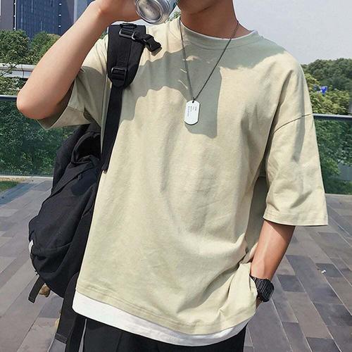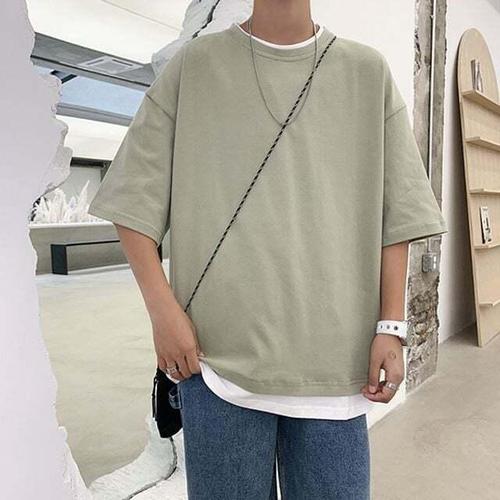 [셀럽하우스]남자 DVGR6948 오버핏 반팔 레이어드 무지 반팔 티셔츠 라운드