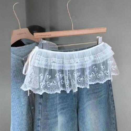 [신상오픈런]여성 프릴 레이스 스트링 허리밴드 레이어드 스커트 (38541533)
