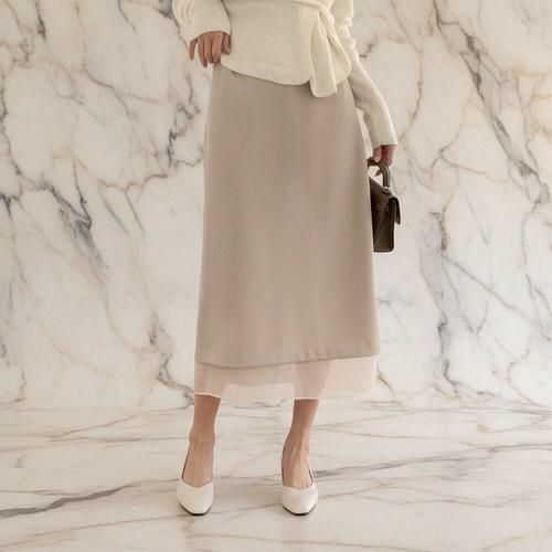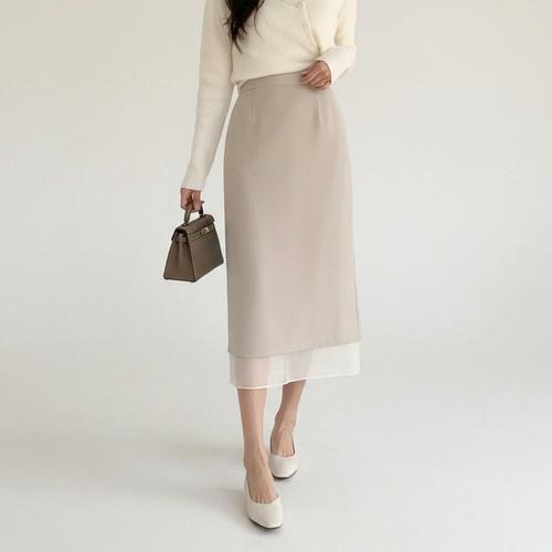 [미라클세븐]여성용 시스루 레이어드 롱 스커트 봄 여름용