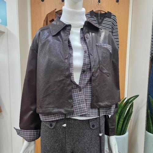[밸리걸] 데님 배색 레이어드 레더 자켓 223110