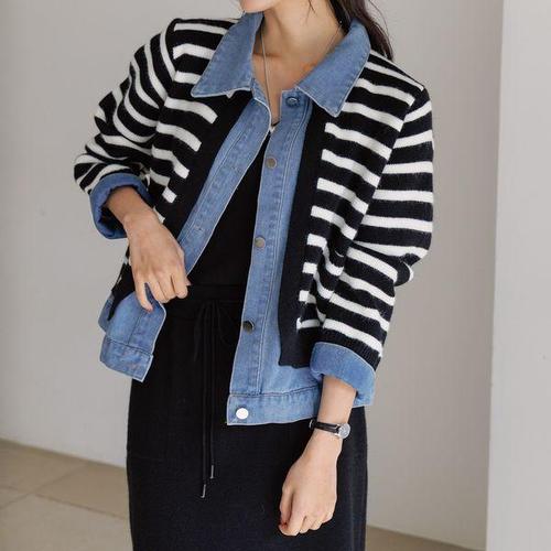 [더블유피비지]줄가라 레이어드 데님 자켓