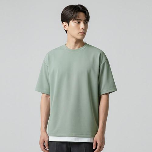 [리얼슬로우]오버핏 레이어드 반팔 티셔츠 RSTS3041