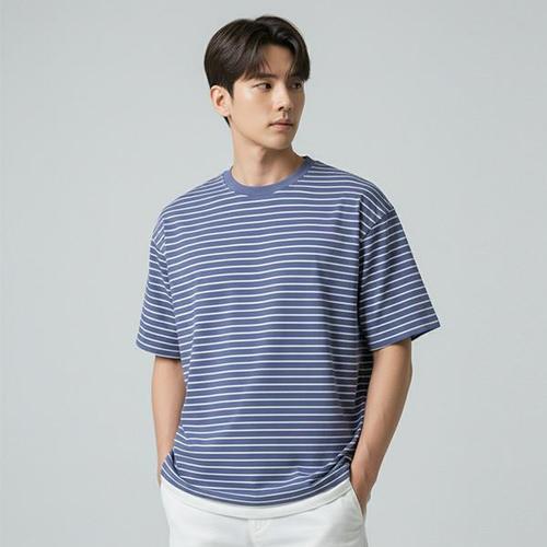 [리얼슬로우]오버핏 스트라이프 레이어드 반팔 티셔츠 RSTS3042
