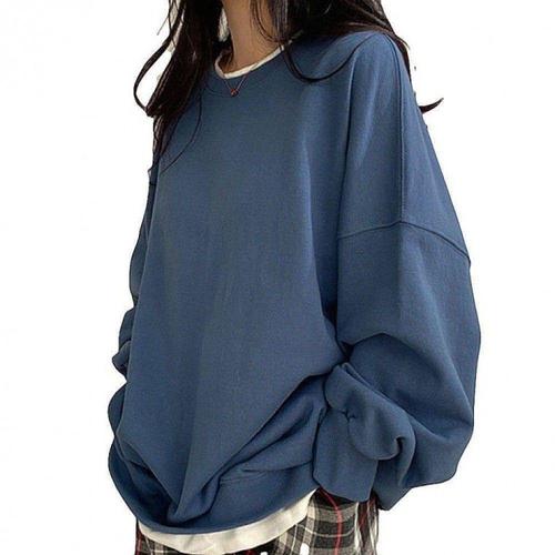 에브리원 여성용 오버핏 레이어드 라운드넥 면 긴팔티셔츠