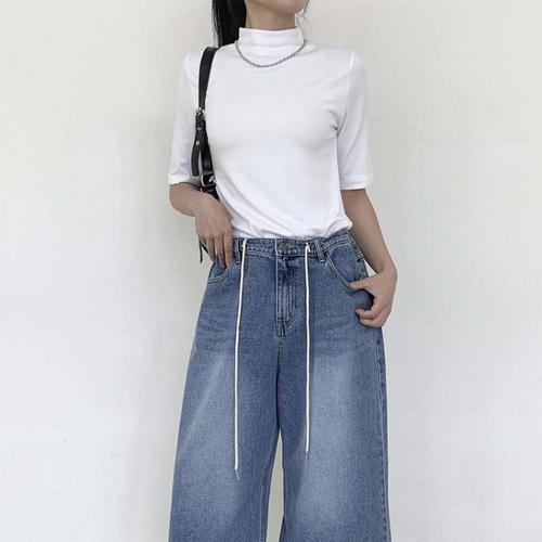 옷자락 / 여자 레이온 스판 하이넥 무지컬러 반팔 티셔츠