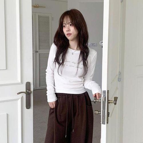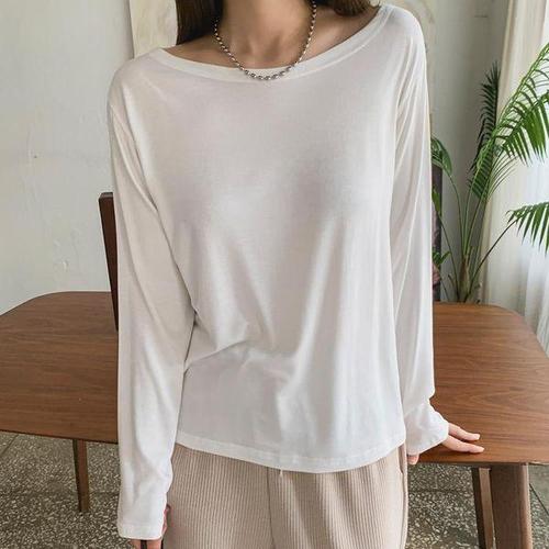 [신상오픈런]여성용 스판 레이온 긴팔 라운드넥 티셔츠