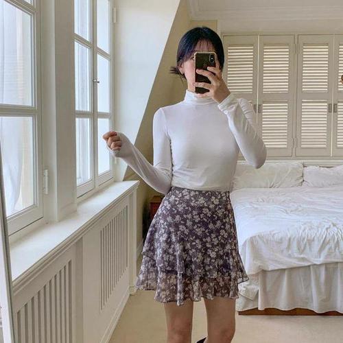 [신상오픈런]여성 슬림핏 긴팔 티셔츠 레이온 스판 폴라넥 데일리웨어