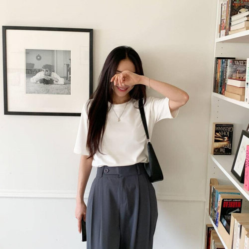 [옷자락] 여자 레이온 스판 찰랑핏 라운드넥 반팔 티셔츠