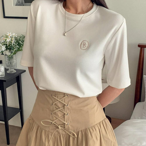 옷자락 / 여자 심플 레이온 스판 자수 레터링 반팔 티셔츠