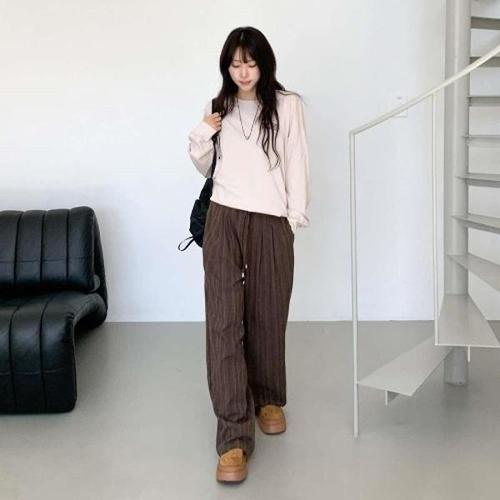 [다잇템][다잇템] 여자 넓은 편한 핀턱 줄지 레이온 고무줄 팬츠_23483905_588872