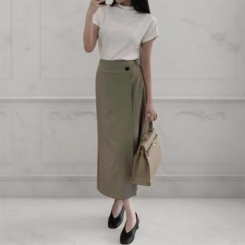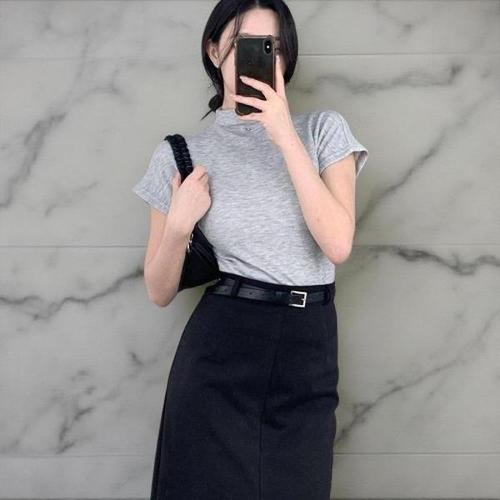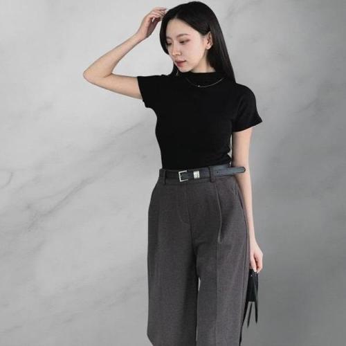 [다잇템][다잇템] 여성 모크넥 미니멀리즘 레이온 편한 반소매 보온 티셔츠_23460842_588872