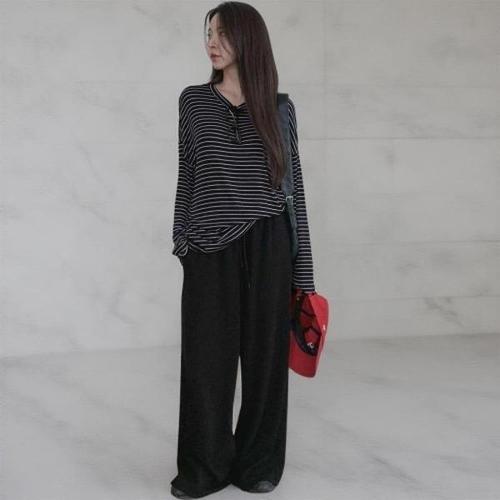 [다잇템][다잇템] 여성 신축성 단가라 레이온 롱슬리브 U넥 티셔츠_23460862_588872