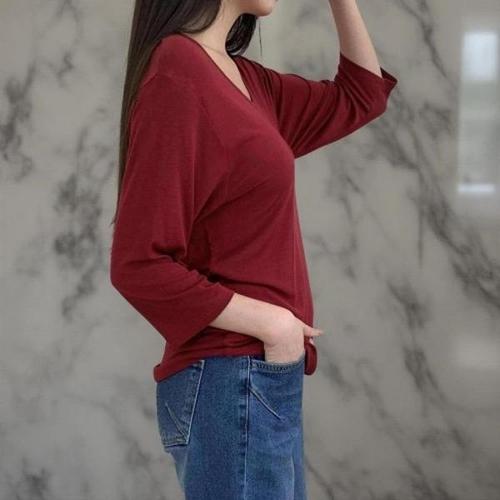 [다잇템][다잇템] 여성 민무늬 빅사이즈 레이온 8부 색상 편한 일상 티셔츠_23460858_588872