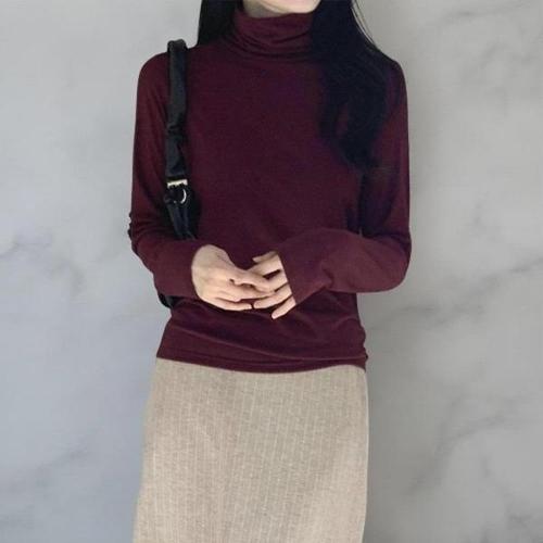 [다잇템][다잇템] 여성 편한 하이넥 색상 레이온 보온 베이직 롱슬리브 티셔츠_23460817_588872