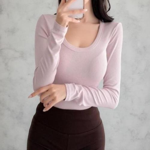[다잇템][다잇템] 여성 레이온 U넥 피치기모 롱슬리브 무지색 티셔츠_23460821_588872