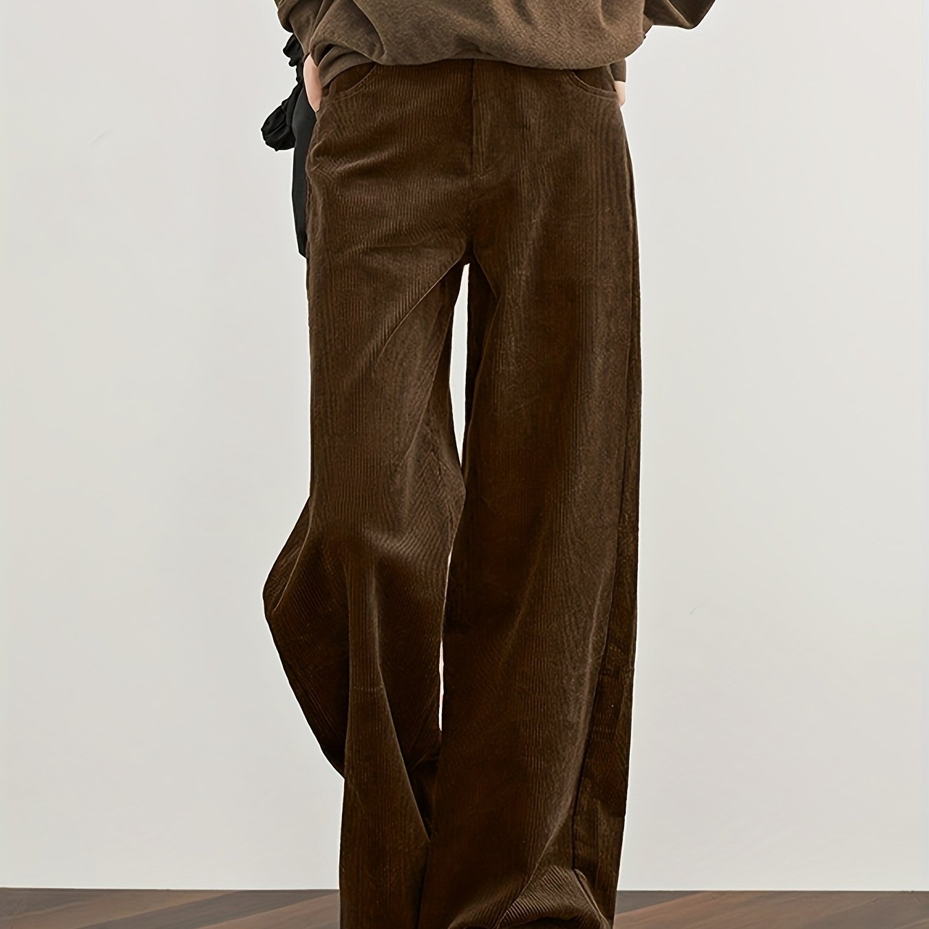 TEMU 여름/가을 신상 여성용 두꺼운 하이웨이스트 코듀로이 레그 팬츠. 세련된 슬란트 포켓이 있는 긴 바지로, 캐주얼하고 포멀한 모든 행사에 완벽합니다.|냉장고바지|바지