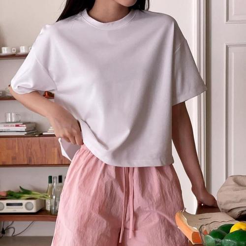 후들후들한 보드라운 소재로 잠옷으로도 착용 가능한 기본 반팔티셔츠