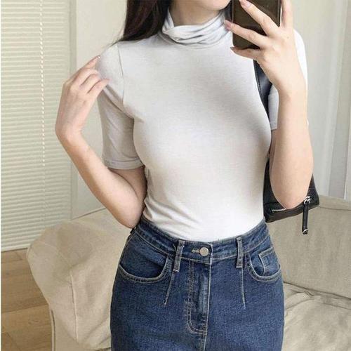 [다잇템]여자 모크넥 편한 슬림핏 클래식 레이온 반팔티