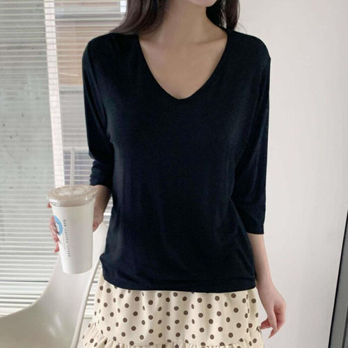 [옷자락]여자 데일리 레이온 스판 찰랑핏 유넥 8부 티셔츠