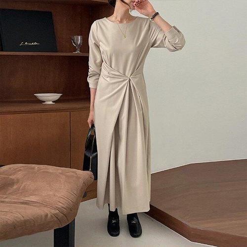 긴팔원피스 여자 롱원피스 깔끔 레이스넥라인 단아 허리끈 하객룩 WFJHMVK