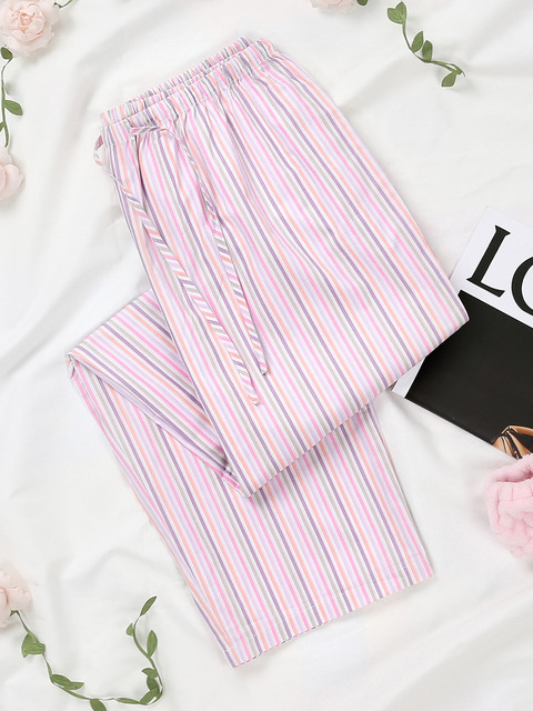 레인보우 하트 순면 피치기모 파자마 롱 팬츠