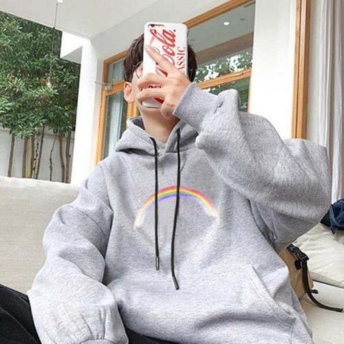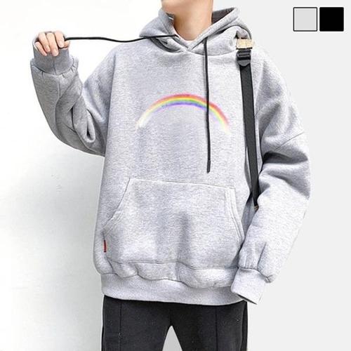 [엄지척]남성 레인보우 포인트 기모안감 후드 티셔츠 루즈핏_20459984_667501
