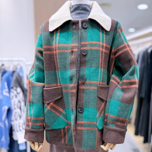 레코브 (레코브) 울혼방뽀글이카라체크 코트(LK61CZCT503X)