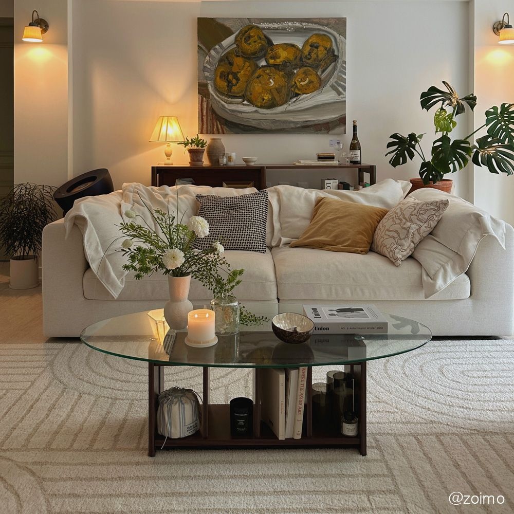 파레드 타원형 좌식 강화유리 수납 소파 거실 테이블 800 1200 2type