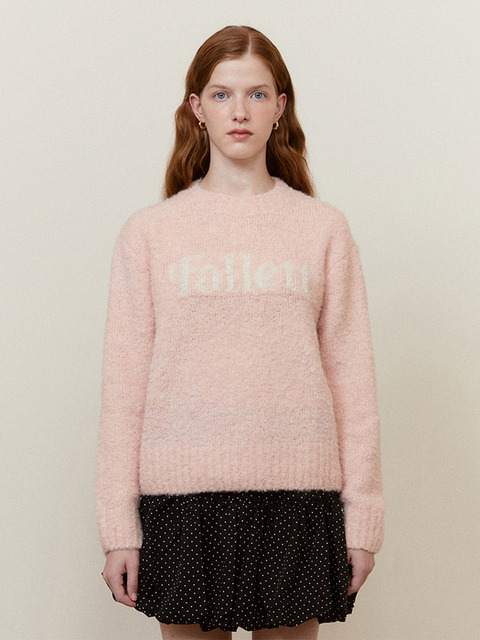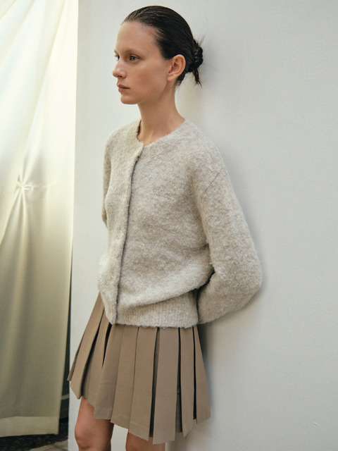 [팔렛] 스토리 로고 부클 니트 가디건 베이지