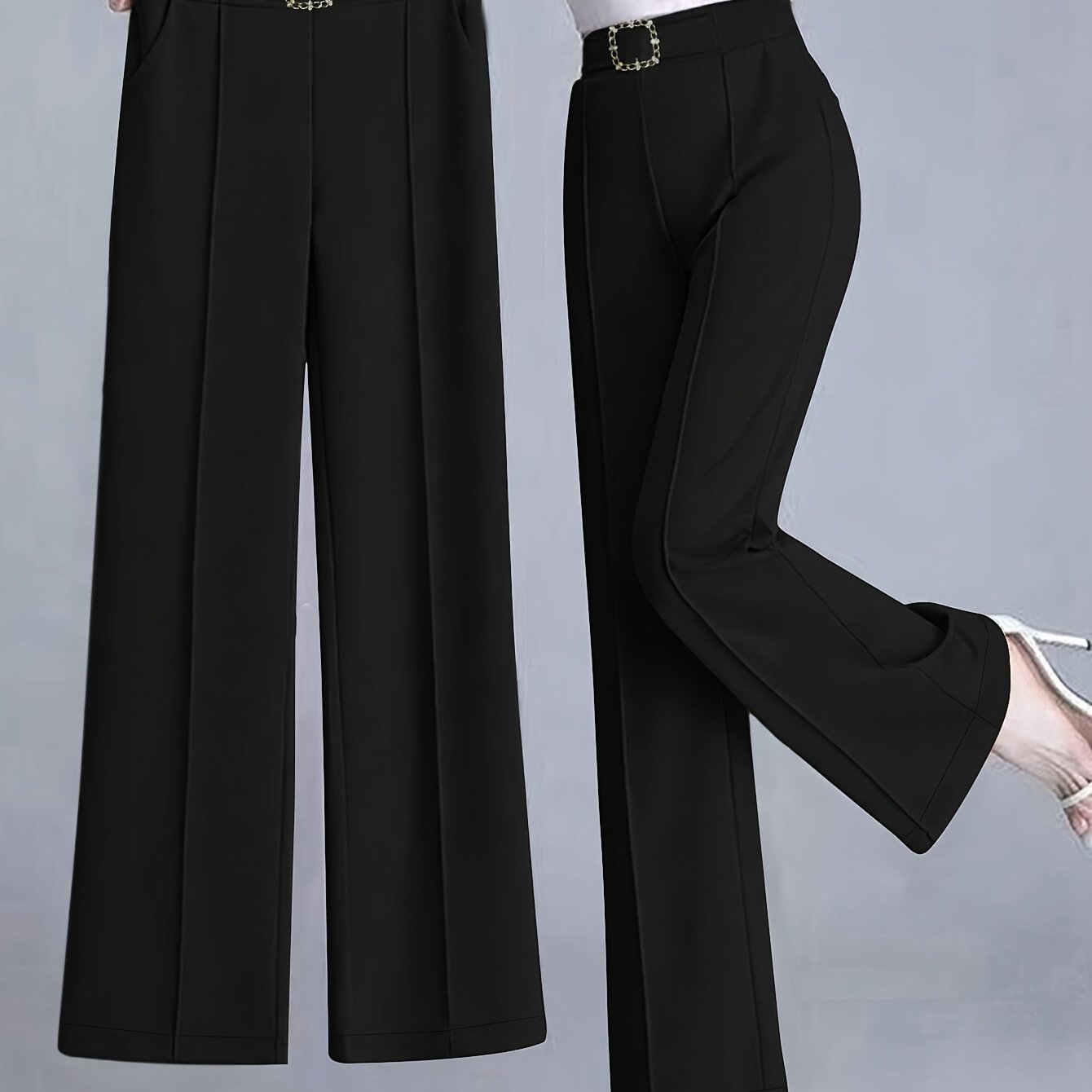 TEMU 여성용 하이웨이스트 정장 바지, 허리 부분에 금속 장식 버클 장식, 사계절 착용 가능, 세탁기 사용 가능