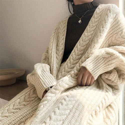 [셀럽하우스]꽈배기 CXDD8179 여성 가디건 로브 롱 니트가디건 여자 아우터