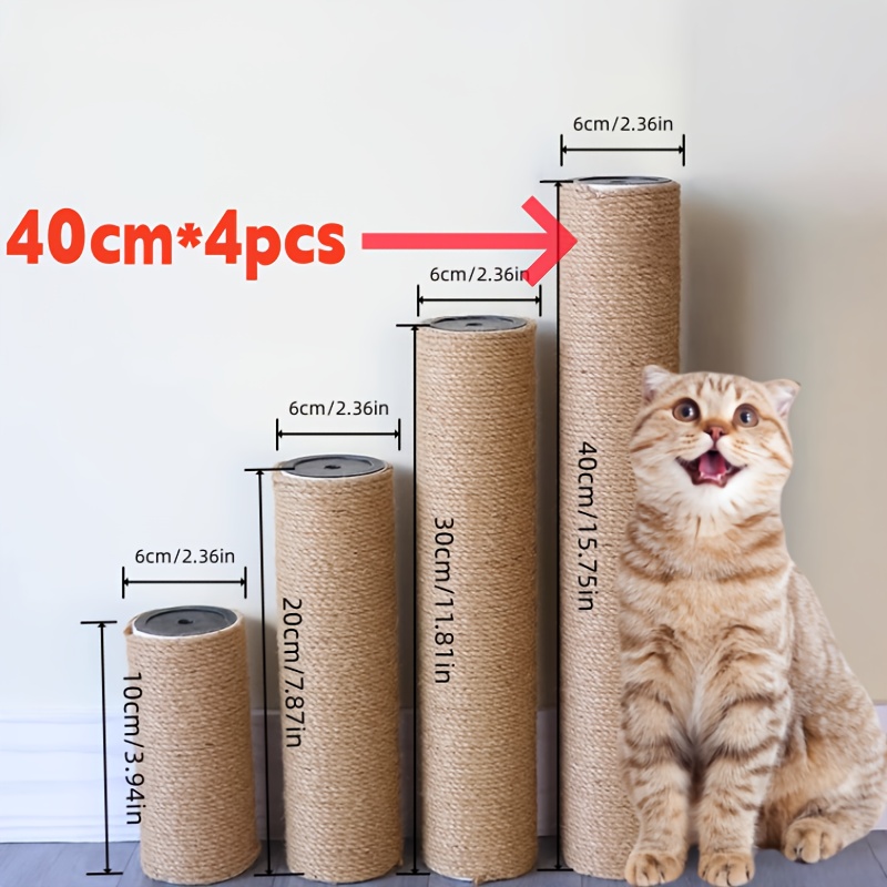 TEMU DIY 캣타워 캣트리 부품 4개 세트 - 고양이 스크래쳐 교체용 기둥 - M8 너트가 있는 내구성 있는 천연 황마 로프, 랜덤 색상(베이지/화이트) - 고양이 가구 수리 및 DIY용 설계, 스크래쳐 기둥 관리, 지금 바로 캣타워 업그레이드하세요