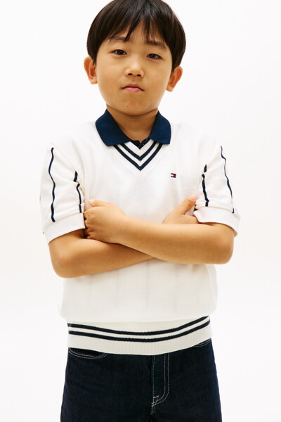 바시티 립 브이넥 니트 베스트