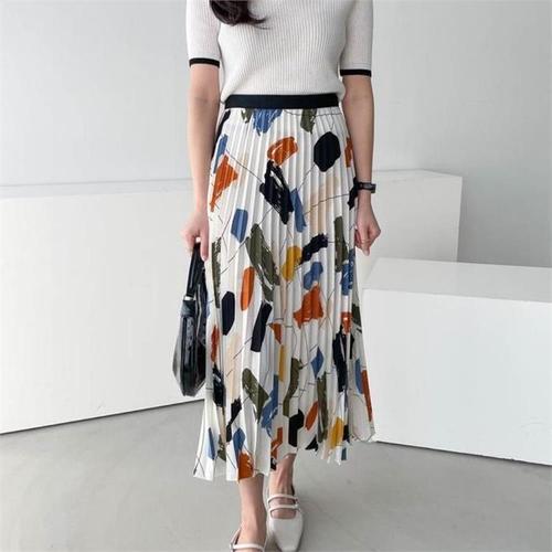 [다잇템]여자 알록달록 플리츠원단 MAXI 롱스커트 (8268962A)
