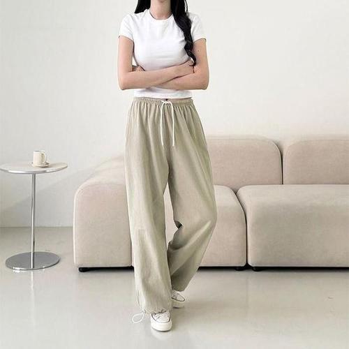 [셀러허브_여성트랜드패션]ONM 로우라이즈 허리밴딩 스트링 면바지 가을 팬츠