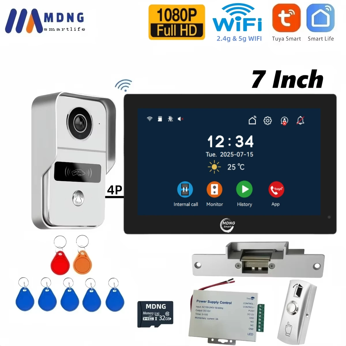 7 인치 Tuya 스마트 와이파이 비디오 도어 폰 인터콤 시스템 (전기 스트라이크 잠금 장치 포함) 1080P 무선 비디오 도어 폰 인터콤 초인종