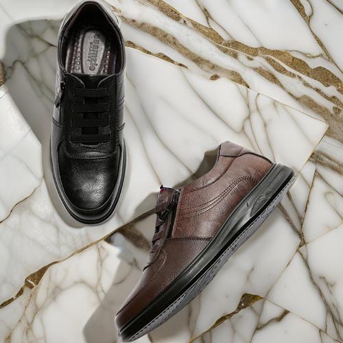 [옷자락] 남성 중년화 고무줄끈 지퍼 가죽 검정 로퍼 운동화
