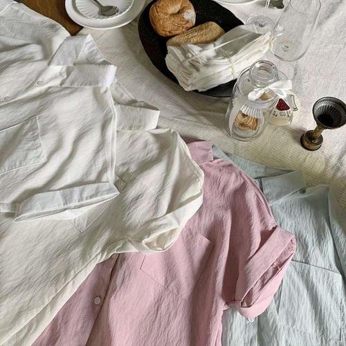 [옷자락]여자 파스텔컬러 포켓 소매롤업 반팔 셔츠 남방