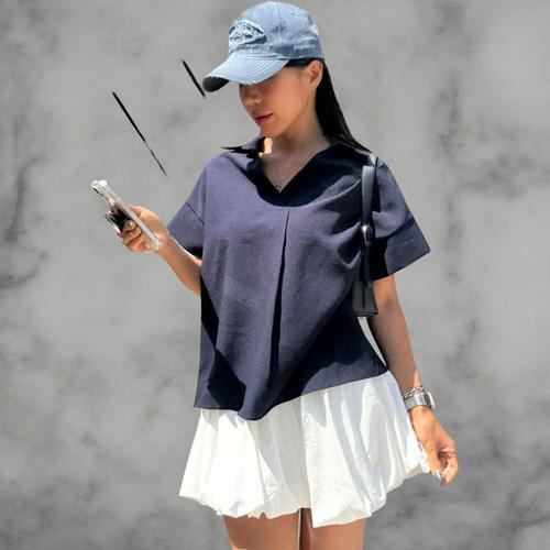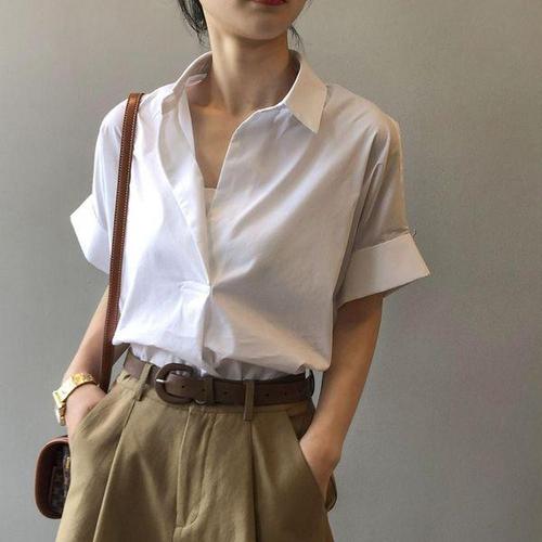 [셀러허브_여성트랜드패션]MFNC030032 여름셔츠 - 롤업 반팔 셔츠