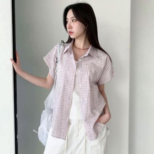 [다잇템][다잇템] 여자 남방 소매롤업 박시핏 캐쥬얼 반소매 격자 남방_21320669_588872