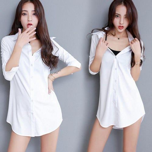 뒷트임 단추 포인트 여성 베이직한 롱셔츠 코디 흰색 여성용셔츠 단추포인트셔츠 단정한셔츠 단정한블라우