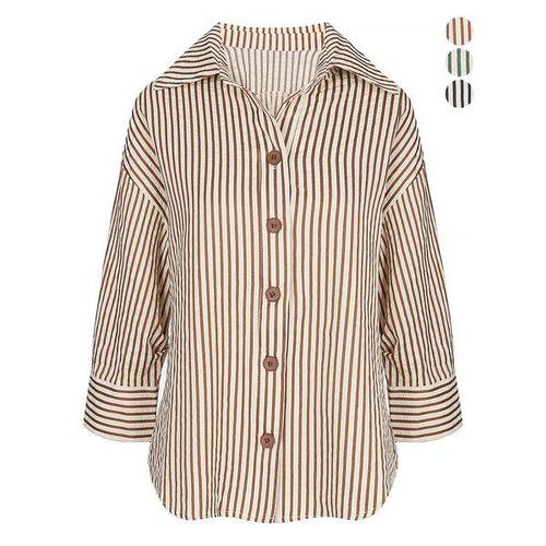 별후이 여성용 가을 빅사이즈 가디건 스트라이프 루즈핏 긴팔 롱셔츠