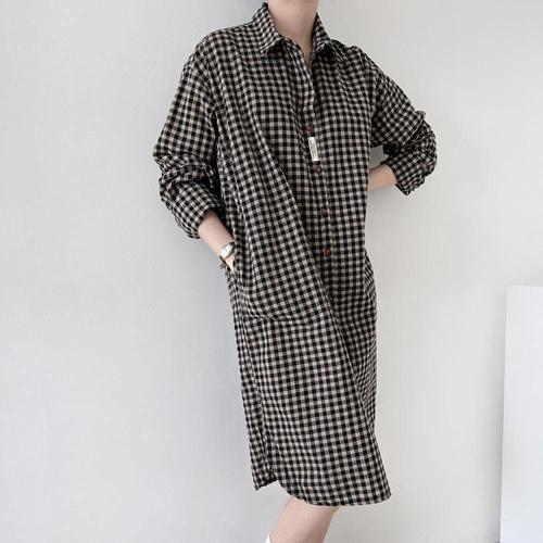 [다잇템]여자 주머니 깅엄체크 2WAY 드레스 롱남방 셔츠