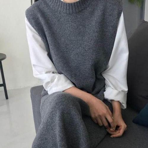 [다잇템_패션]여자 V넥 슬리브리스 롱슬리브 코디 슬릿 니트