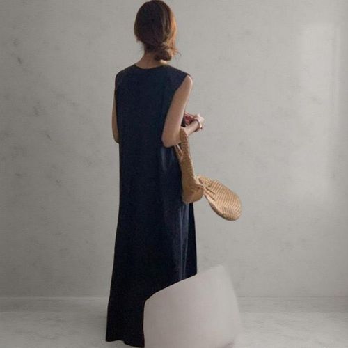 [옷자락] 여성 바스락 라운드넥 민소매 플레어 롱 드레스